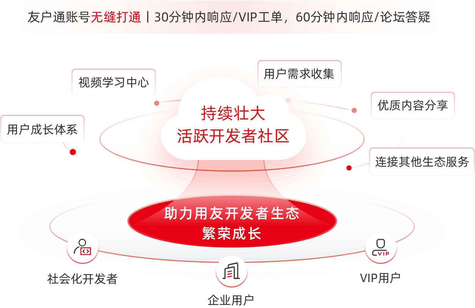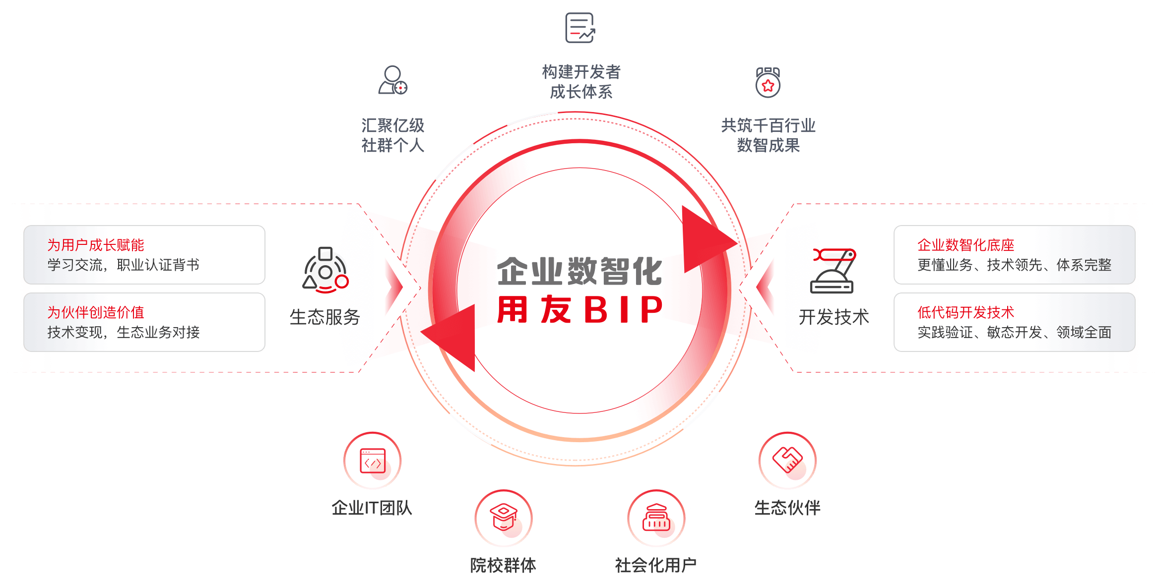 面向广泛的生态用户,提供周到的平台服务以及成熟的开发技术
